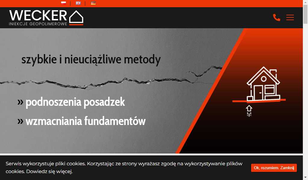 Wecker to firma działająca w obszarze robót geotechnicznych, której profil można opisać jako diagnozowanie problemów z podłożem i posadzkami oraz dobór działań prowadzących do poprawy nośności warstw pod posadzką. W praktyce tego typu prace wykonuje się tam, gdzie występują przestrzenie pod płytą posadzkową, gdzie pojawia się zapadanie
